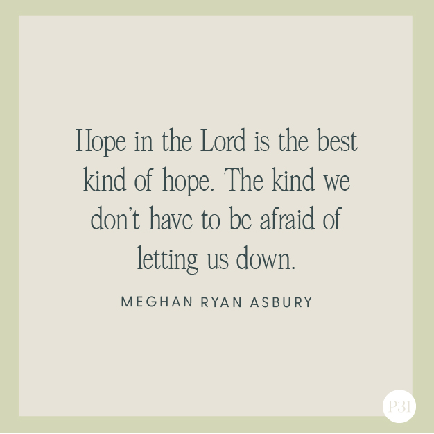 Hope in the Lord is the best kind of hope. The kind we don’t have to be afraid of letting us down. The kind that doesn’t make us embarrassed, disappointed, or ashamed. Rather, it helps us run the race of life God has gifted us with. And we don’t have to stay weary in the waiting; the Lord gives us strength for each step.
